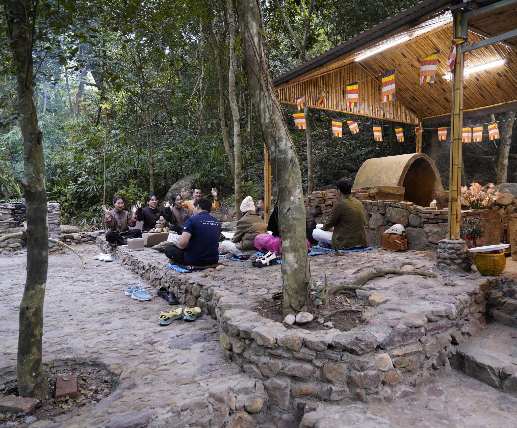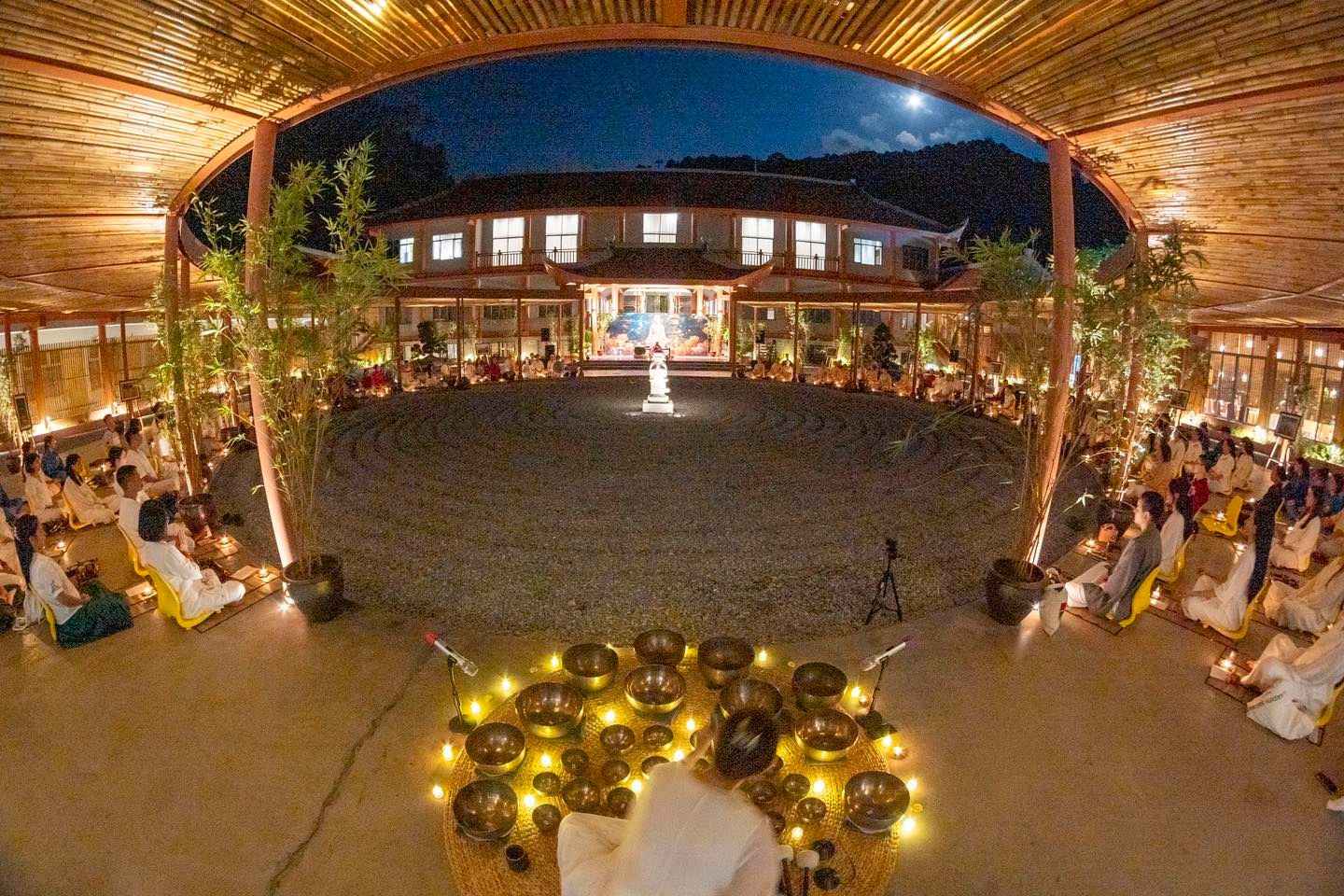 Sau bữa tối ấm cúng là lúc lửa trại được thắp lên. Trong tiếng thiền ca sâu lắng, ta ngồi lại bên nhau, cảm nhận hơi ấm và sự bình an lan tỏa trước khi chìm vào giấc ngủ yên lành.