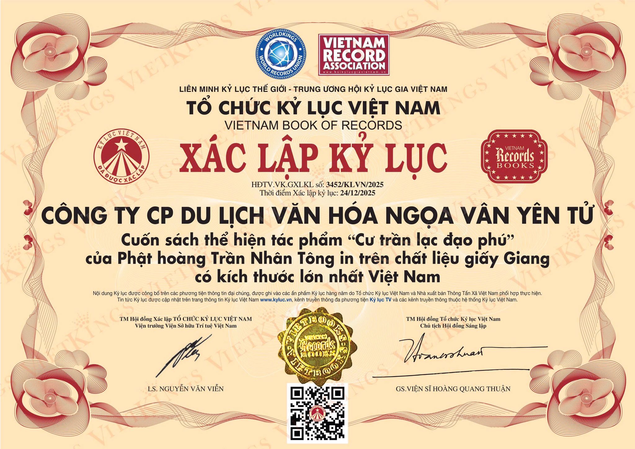 Cũng trong khuôn khổ buổi Lễ, đại diện Hội Kỷ lục gia Việt Nam công bố Cuốn sách kỷ lục "Cư Trần Lạc Đạo Phú" lớn nhất Việt Nam là một phiên bản độc bản được chế tác thủ công đặc biệt, có kích thước 68x136cm được in trên chất liệu giấy giang thể hiện tác phẩm kinh điển của vua Trần Nhân Tông về việc tìm thấy đạo giữa đời thường.