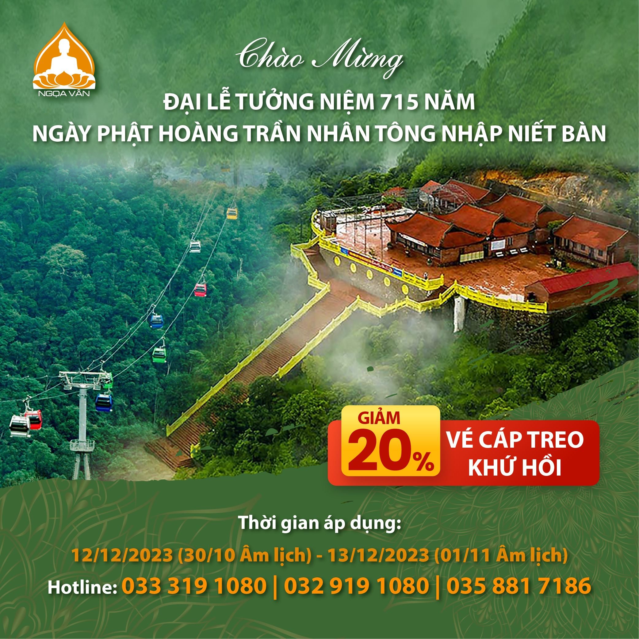 THÔNG BÁO CHÍNH SÁCH ƯU ĐÃI GIÁ VÉ CÁP TREO NHÂN DỊP ĐẠI LỄ TƯỞNG NIỆM NGÀY PHẬT HOÀNG TRẦN NHÂN TÔNG NHẬP NIẾT BÀN